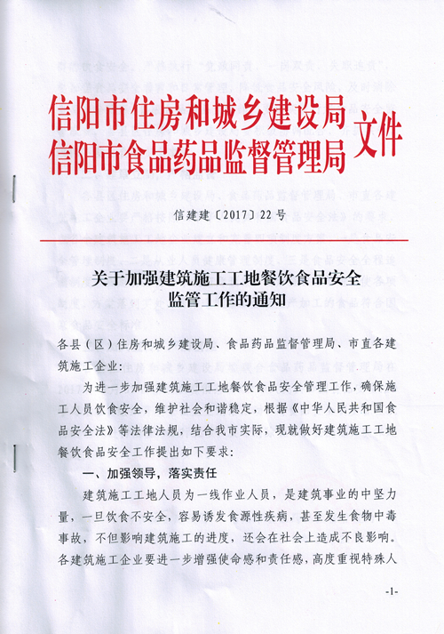 關(guān)于加強(qiáng)建筑施工工地餐飲食品安全監(jiān)管工作的通知