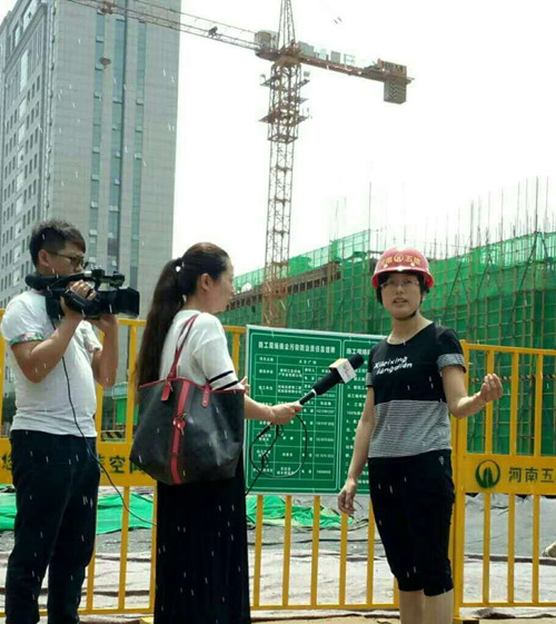 為鼓勵先進,宣傳示范企業(yè),6月23日,信陽市大氣辦邀請信陽市電視臺,就公司對揚塵治理采取的措施及成效經(jīng)驗等問題,在太古廣場項目進行了專題采訪,并在信陽市電視臺進行了報道。公司副總工、工程部部長吳善艷接受了此次采訪。