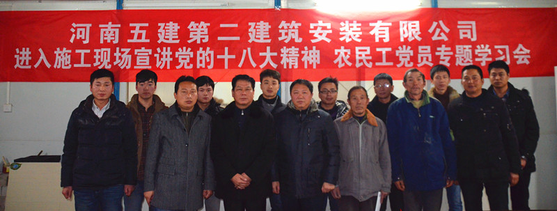 為了迅速掀起學(xué)習(xí)宣傳貫徹黨的十八大精神新高潮,公司黨委在公司二樓會(huì)議室組織召開了貫徹學(xué)習(xí)黨的十八大宣講大會(huì)。隨后又在公司金融信訪大廈項(xiàng)目部組織召開了十八大精神進(jìn)入施工現(xiàn)場(chǎng),農(nóng)民工黨員專題學(xué)習(xí)會(huì),并邀請(qǐng)市住建局機(jī)關(guān)黨委吳祖啟書記為黨員同志交流學(xué)習(xí)十八大精神的經(jīng)驗(yàn)。