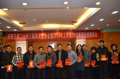 隨后,財(cái)務(wù)總監(jiān)鄭慧和副總經(jīng)理吳建功分別宣讀了《關(guān)于對2013年度公司先進(jìn)單位和個(gè)人進(jìn)行表彰的決定》和對2013年度科技創(chuàng)新、工程質(zhì)量和安全管理目標(biāo)實(shí)現(xiàn)的獎勵文件,對先進(jìn)項(xiàng)目部(單位)、經(jīng)濟(jì)貢獻(xiàn)人員、優(yōu)秀管理人員、質(zhì)量安全管理標(biāo)兵和先進(jìn)個(gè)人進(jìn)行表彰,并頒發(fā)了獎金和證書。同時(shí),希望評選出的先進(jìn)單位和個(gè)人戒驕戒躁、再接再厲,在各項(xiàng)工作中認(rèn)真履行職責(zé),起模范帶頭作用,為全面完成公司2014年各項(xiàng)任務(wù)和目標(biāo)而努力。