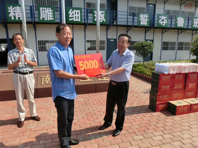 入夏以來,驕陽似火,酷熱難耐,持續(xù)的高溫籠罩著信陽大地,炎炎烈日下,公司各項目一線員工依然堅守崗位。近日,信陽市總工會副主席羅文耀、石磊等領(lǐng)導來到我公司圣德醫(yī)院項目部慰問施工現(xiàn)場的工人們,并為他們帶來礦泉水、毛巾等防暑降溫物品以及5000元慰問金,在炎熱的夏日為他們送去絲絲清涼。