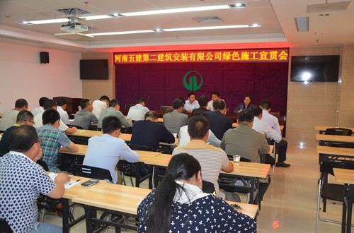 2015年5月26日下午15時(shí),河南五建第二建筑安裝有限公司綠色施工宣貫會(huì)正式開始,本次會(huì)議由各項(xiàng)目部項(xiàng)目經(jīng)理、技術(shù)負(fù)責(zé)人以及公司工程部全體人員共計(jì)30余人參加。