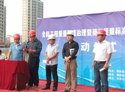 9月25日上午,由固始縣建設工程質(zhì)量監(jiān)督總站和固始縣建委承辦的全縣工程質(zhì)量標準治理暨施工質(zhì)量標準化觀摩活動啟動儀式在我公司承建的固始縣婦幼保健醫(yī)院項目施工現(xiàn)場隆重舉行。固始婦幼保健醫(yī)院業(yè)主、固始縣建設局、固始縣建設工程質(zhì)量監(jiān)督總站領導班子成員、固始各房地產(chǎn)開發(fā)公司負責同志以及縣各施工單位等有關人員共計200余人參加了儀式。