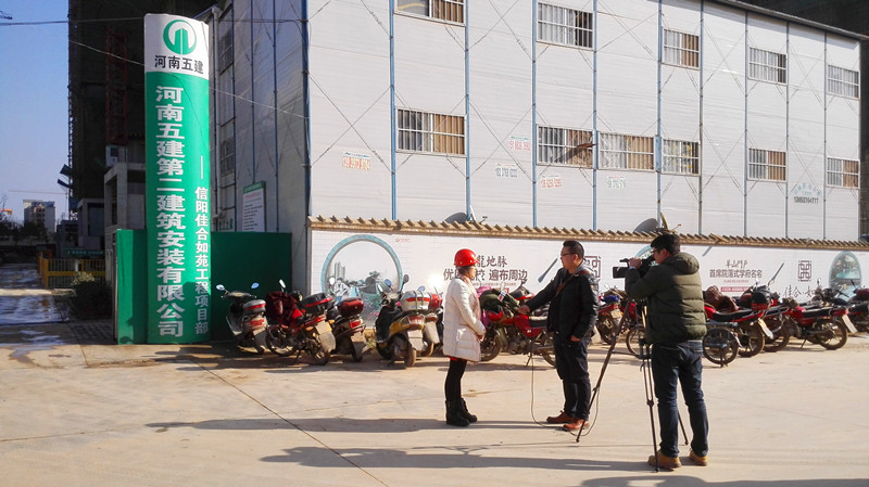 信陽市大氣辦于12月25日邀請信陽市電視臺,在公司佳合如苑項目部對公司關(guān)于揚塵治理采取的措施及成效,進行了專項采訪報道,公司副總工、工程部部長吳善艷接受了此次采訪。