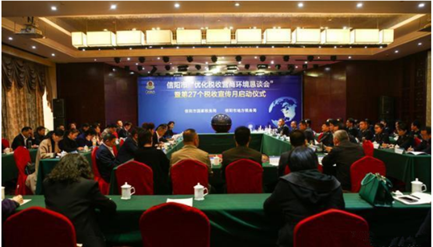 公司主要領導受邀參加信陽市“優(yōu)化營商環(huán)境懇談會”暨第27個稅收宣傳月啟動儀式
