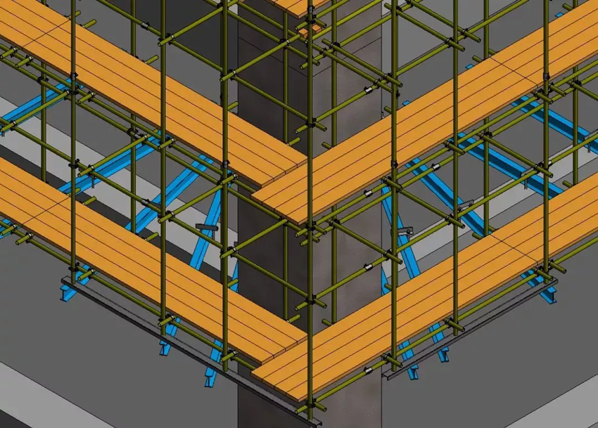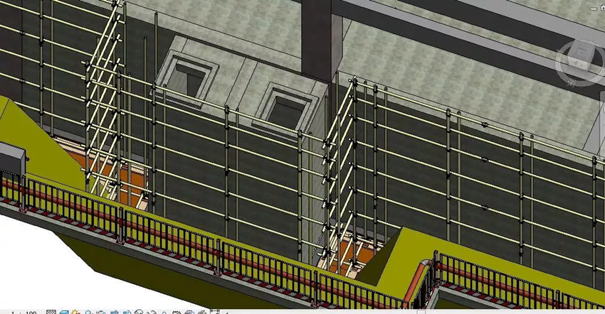 結(jié)合施工方案進(jìn)行懸挑腳手架構(gòu)件族創(chuàng)建、腳手架模型搭設(shè),包含工字鋼、預(yù)埋鋼筋、角鋼、墊板、卸荷鋼絲繩、立桿、橫桿、腳手板、密目網(wǎng)、水平安全網(wǎng)、踢腳板、連墻桿、抱柱連接、卸料平臺(tái)等構(gòu)件族的創(chuàng)建和模型創(chuàng)建布置。掌握懸挑腳手架模型創(chuàng)建方法及搭設(shè)施工方案要求,及腳手架材料的精細(xì)化統(tǒng)計(jì)管理。