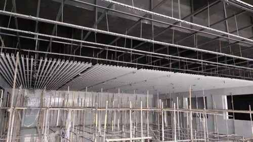 信陽高鐵站前(快樂園)交通樞紐配套設(shè)施建筑工程位于信陽高鐵站西側(cè),南北兩側(cè)為新七和新五大道,西側(cè)為規(guī)劃新三十六大街。工程地下二層,建筑面積為144740㎡,建設(shè)單位為信陽高鐵片區(qū)規(guī)劃建設(shè)領(lǐng)導(dǎo)小組辦公室,結(jié)構(gòu)形式為框架結(jié)構(gòu)。地下一層為商業(yè)和旅客換乘中心,地下二層為停車場。我公司承接地下一層、二層裝飾裝修、水電安裝、消防安裝、電梯安裝等工程,工程造價為1.7億元。 1.吊頂班組,北落客區(qū)東側(cè)靠展廳坡道吊頂轉(zhuǎn)換層安裝完成約1000㎡、北落客區(qū)西側(cè)靠展廳位置完成吊頂轉(zhuǎn)換層安裝約1000㎡。