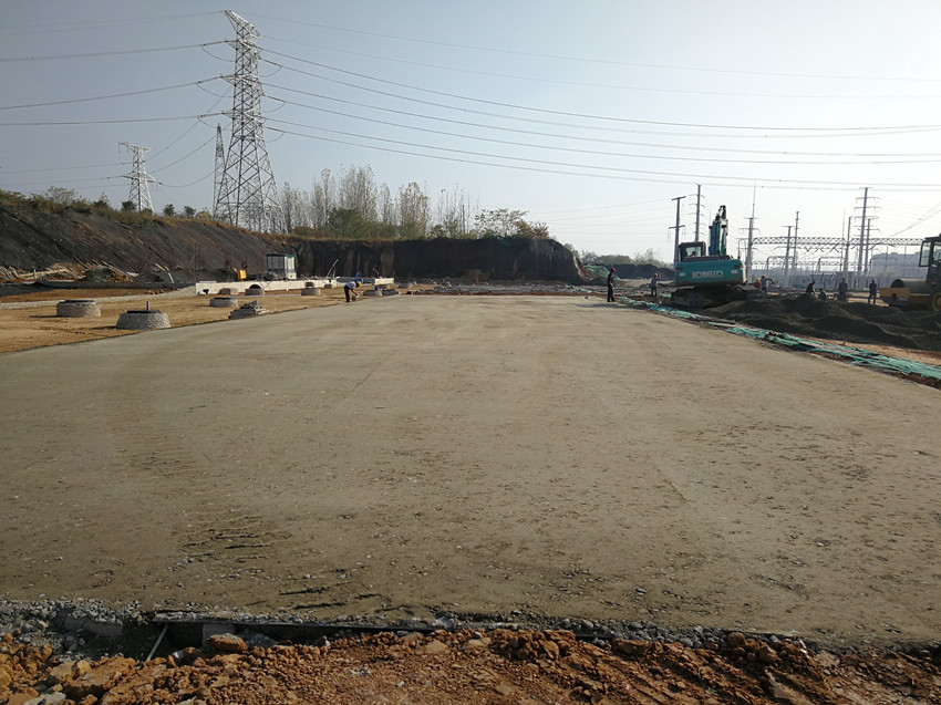 (1)南區(qū)東側(cè)兩條停車線、東側(cè)兩條道路及南側(cè)入口主路,出口主路,壓路機碾壓密實、素土夯實完成,南區(qū)東側(cè)兩條停車線路基水穩(wěn)基層全部完成。