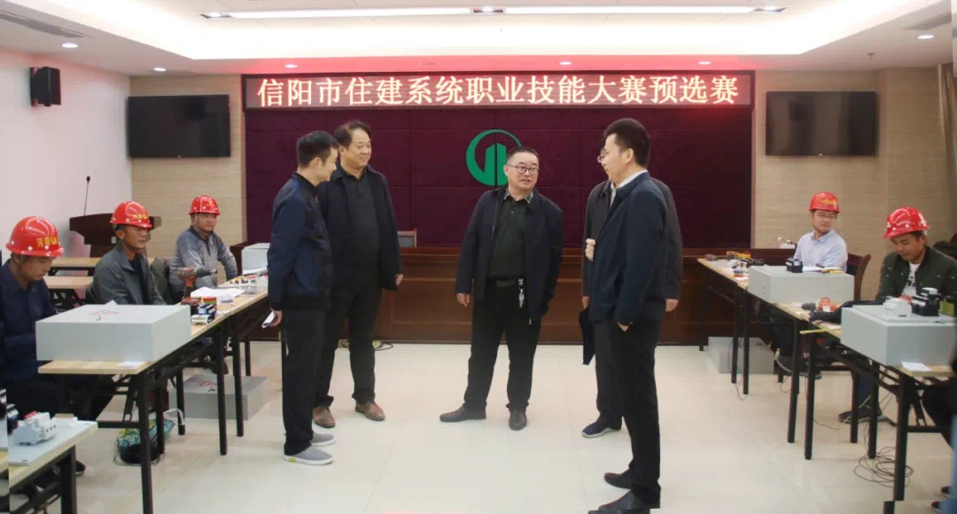 公司積極舉辦此次職業(yè)技能競賽,成為本地同行業(yè)中首先響應相關文件要求,開展此類活動的企業(yè),受到上級主管部門的關注和肯定。12日下午,信陽市住建局主管副局長張奔、人事科科長晏慶軍、建管科科長劉彬等領導在公司黨委書記、董事長吳萬仁、副總經(jīng)理吳建功陪同下,親臨競賽現(xiàn)場,看望比賽中的選手,為他們加油、助力。