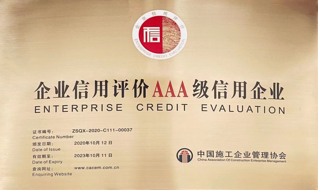 中國(guó)施工企業(yè)管理協(xié)會(huì)AAA級(jí)信用等級(jí)證書