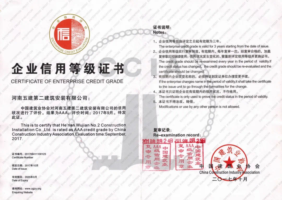 中國(guó)建筑業(yè)協(xié)會(huì)AAA級(jí)信用等級(jí)證書